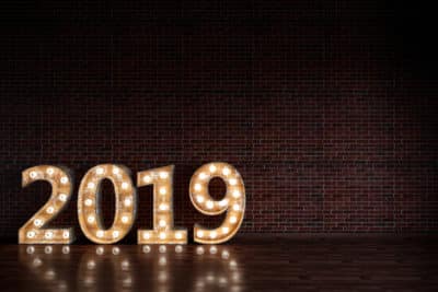 2019 Bulb Sign On Black Brick Wall