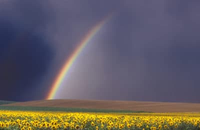Rainbow in a field of sunflowers