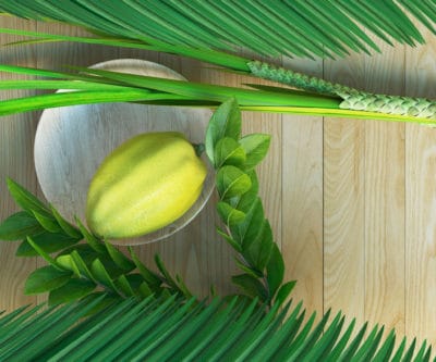 Symbols of the Jewish holiday Sukkot with palm leaves