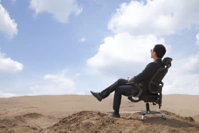 Young businessman in middle of the desert