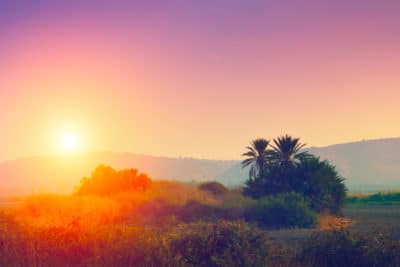 Magic sunrise over desert