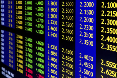 Data table, financial numbers on a computer screen